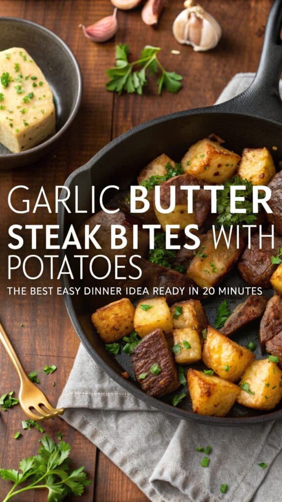 This Garlic Butter Steak Bites with Potatoes recipe is the answer. It combines tender, seared beef with crispy, golden potatoes, all tossed in a rich garlic herb butter. It is perfect for busy parents, working professionals, or anyone who wants a hearty meal without a sink full of dishes. It’s quick, high in protein, and family-friendly.